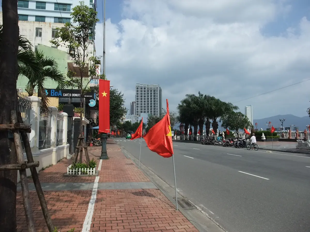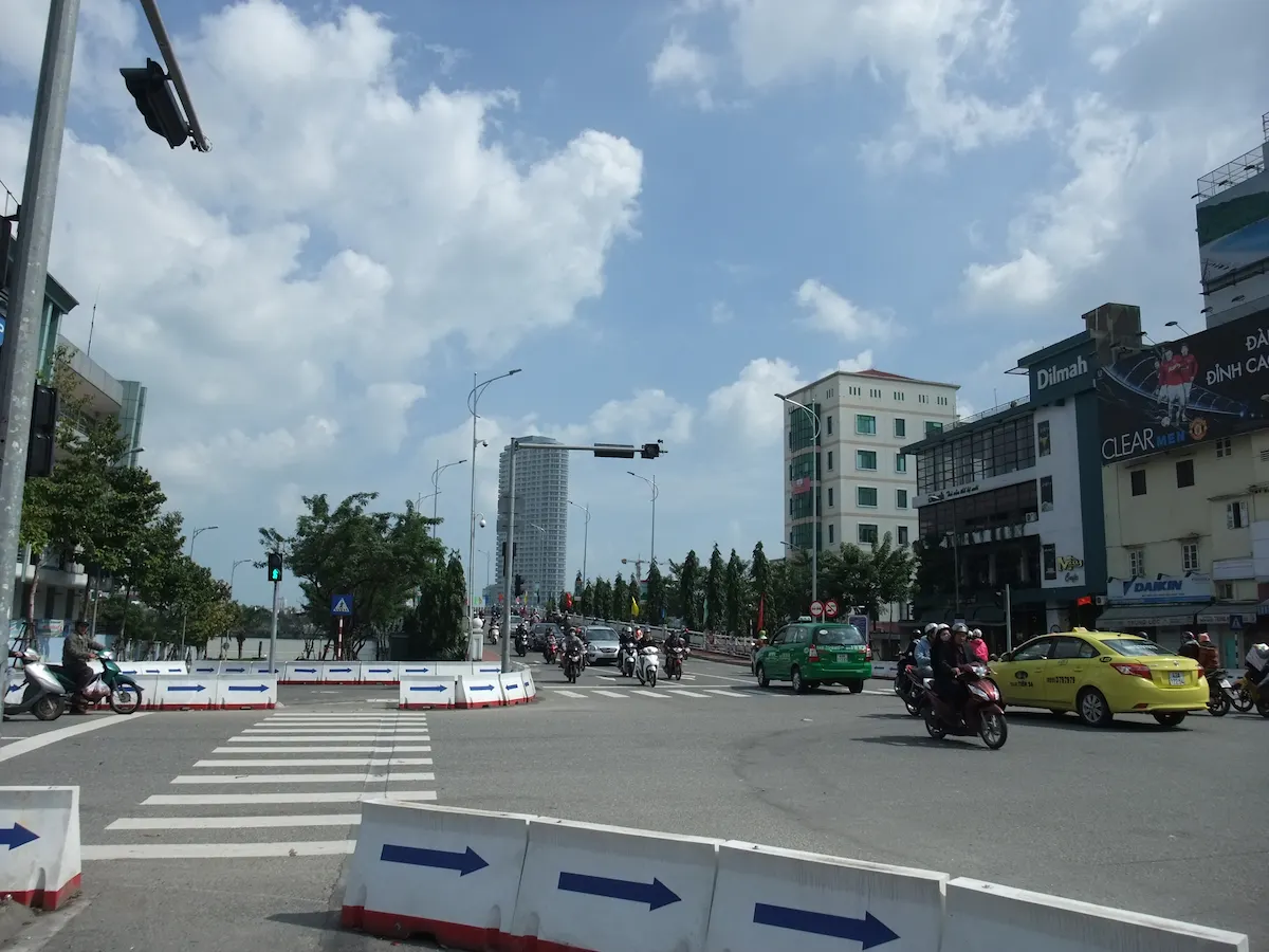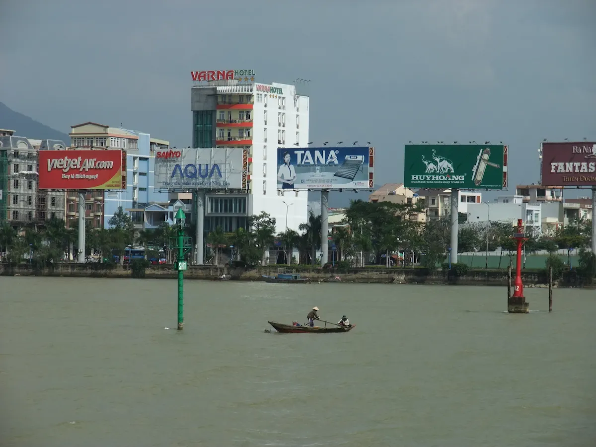 ベトナム中部の最大商業都市、ダナン 空港からまっすぐ伸びる道を走ると、龍の形をしたロン橋に至る ロン橋を含むハン川沿いが中心部で、ホテルや飲食店が並ぶ そんな中心部の高層ビルの中にピンク色のダナン大聖堂がポツンとある ハン市場というベトナム庶民の市場もあり、食料品売り場は凄い臭いである これといった観光地は無いが、周辺の街を旅する拠点とするのには良い街である