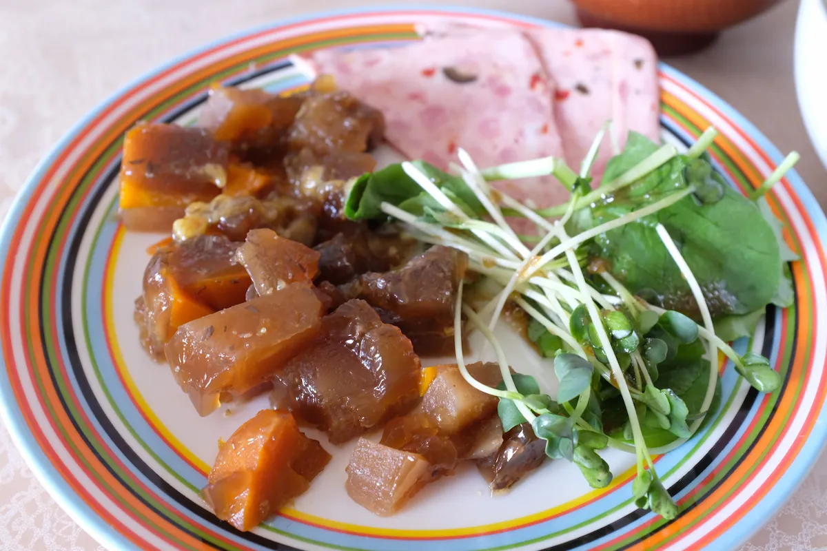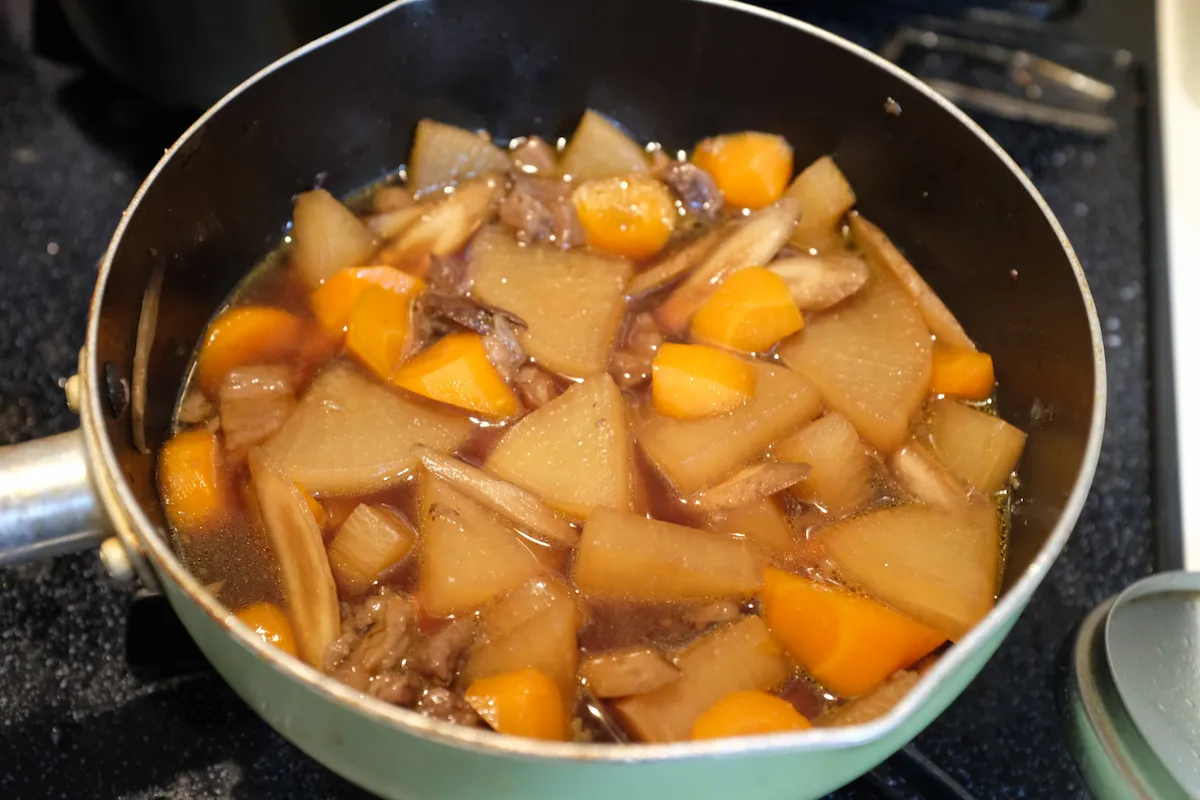 先週末、家族でタコパ(たこ焼きパーティー)をしました。 具はタコだけじゃ面白くないと思って入れたのが牛スジです。 たこ焼きの原型は牛スジとこんにゃくを入れたラヂオ焼きなわけで原点回帰です。 スーパーでそんなことを思いながら牛スジ肉を購入したわけですが、調理方法が分からない。(笑) この日記では、調べながら牛スジ料理に挑戦した内容を備忘録的に残しておきます。 まず牛スジは臭みがあるのでゆでこぼしなる下処理を行います。 牛スジを一口サイズに切ってから、たっぷりの水に入れて火にかけ沸騰したら肉だけ取り出し湯は捨てる処理です。 確かにアクみたいなものが出てきて少し臭かったので鍋を洗って2回ゆでこぼしをしました。 その後、刻んだ生姜とニンニクと一緒に牛スジを鍋に再投入。 料理酒と水(牛スジ肉重量×3~4倍くらい)を入れて再び火にかけ、沸騰したら弱火で1時間放置。 水が途中で減ってくるのでちょっとずつ追加しました。 1時間後に生姜とニンニクを取り除き、ゆで汁が400mlくらいになっていることを確認、。 醤油(大3)、日本酒(大3)、みりん(大2)、砂糖適量を入れて、さらに30分くらい弱火で放置。 出来上がったのがこちらです。 柔らかく仕上がっており、甘辛い味付けは酒のアテにぴったりです。 今回はこのうちいくつかをたこ焼きの具として入れてみたわけです。 率直な感想としてはタコの方が美味しいです。(笑) 牛スジも悪くはないですが、市販の生地の下味に負けてしまい、タコくらいのインパクトがあった方が美味しく感じました。 そこで急遽方針転換で牛スジを煮汁の中に戻して、そこに大根、人参、ごぼうを投入し、野菜に火が通るまで煮ました。 これで牛スジと根菜の煮物の完成です。 牛スジ自体はそんなに量が無かったですが、汁にスジ肉の旨味が染み出しているので煮物にしたら最高です。 食べきれなかった分は冷蔵庫で冷やして保存し、本日の在宅勤務の昼食に牛スジと根菜の煮凝りとして頂きました。 冷めていても美味しいので、日本酒に走りたくなりましたが仕事中なので我慢しました。 ラヂオ焼き用にと思って買ったのに、思い付きで煮物に変化し、最後は煮凝りとして食されたわけです。 牛スジなのにしっかりしたスジ書きが無い料理の話でした。 |