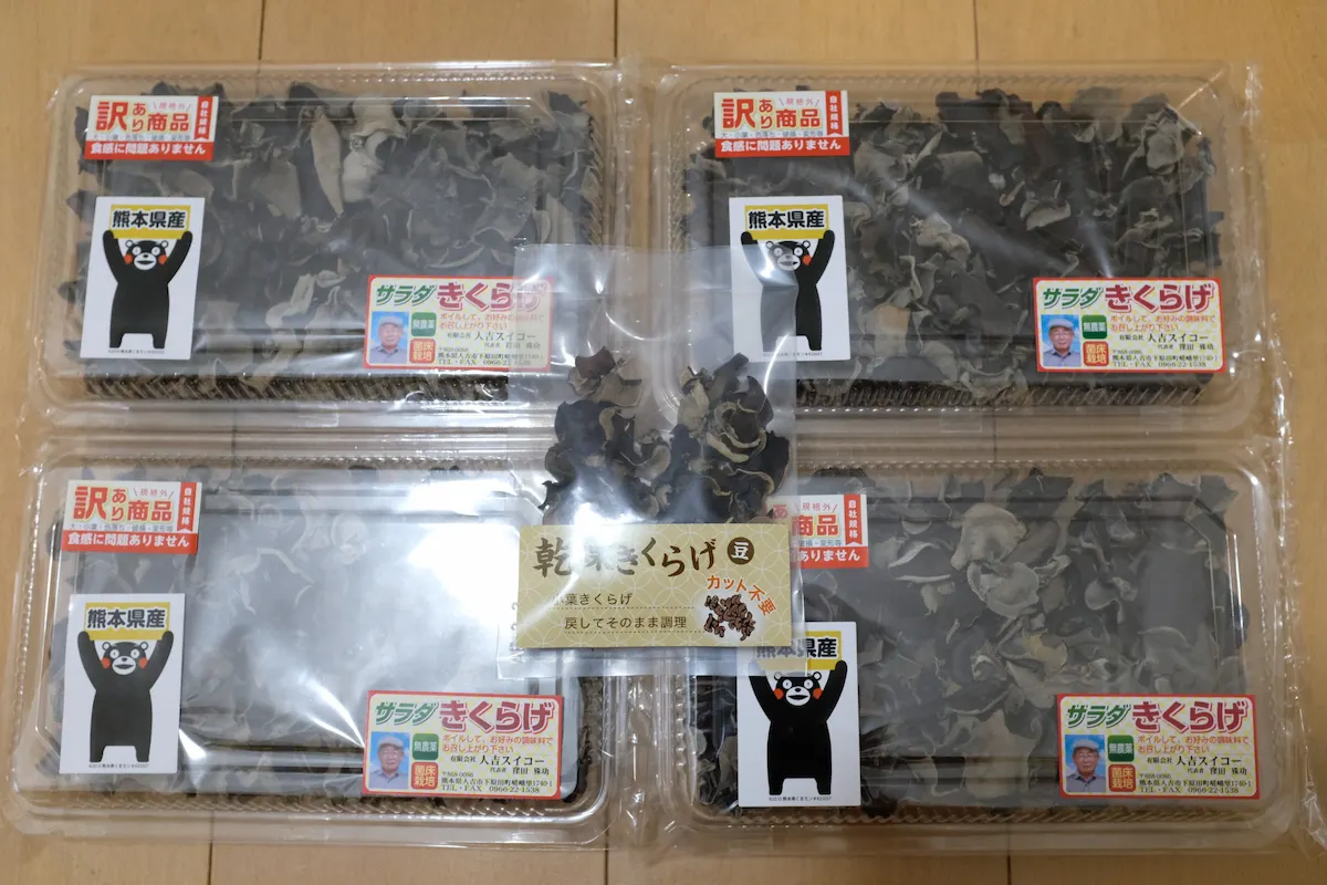 10月になり、ふるさと納税仲介サイトのポイントが付かなくなりました。 予め分かっていたことなので竹バイクは9月末までに全ての寄付を終えました。 今年は11自治体に寄付したのですが、どんどん返礼品がやってくるので我が家の冷凍庫がパンク寸前です。 とりあえず冷凍じゃなくて保存がきくものにしようと思案した結果、熊本県人吉市からきくらげを頂戴しました。 パックに80gずつ入っており、真ん中の小さな袋はおまけです。 とりあえず30gだけ出してみて、1.5Lの水で冷蔵庫に入れて6時間くらいかけて戻しました。 そうしたら増えるワカメのように大きくなって、信じられない量になってしまいました。 この写真は料理に使うために一部を取り出したもので、実際はこの5倍くらいあります。 昨日は早速このきくらげを使って朝から玉子と中華風に合わせてみました。 普通は玉子がメインできくらげがサブですが、玉子少なめできくらげ多めの配分です。 丸鶏がらスープの素とオイスターソースを入れて炒めるだけなので簡単です。 きくらげはあまり火を通すとコリコリした食感が失われるらしいので、玉子を先に焼いてから絡めました。 その結果、玉子が固まり過ぎてイマイチな見た目です。(笑) それでも美味しければ良いんです。 水で戻したきくらげの賞味期限は数日なのでどんどん食べないといけません。 今度はもやしときくらげを沸騰した湯で1分くらいサッと茹でてから醤油、塩、丸鶏がらスープの素をかけてナムルにしました。 味は文句なく美味いですが、細切りで使ったので量が全然消費出来ません。 他にも豚肉、玉ねぎ、大根と一緒に和風に炒めたり、パスタに入れたりして、この土日はきくらげ尽くしです。 ほとんどきくらげ中心の生活です。 今度からきくらげを戻すときは5~10gにしておこうと反省したのでした。 |