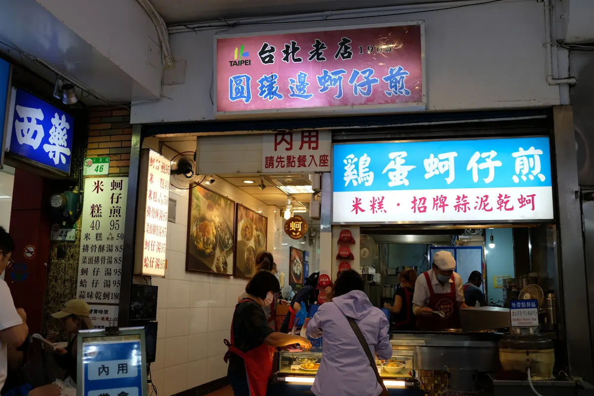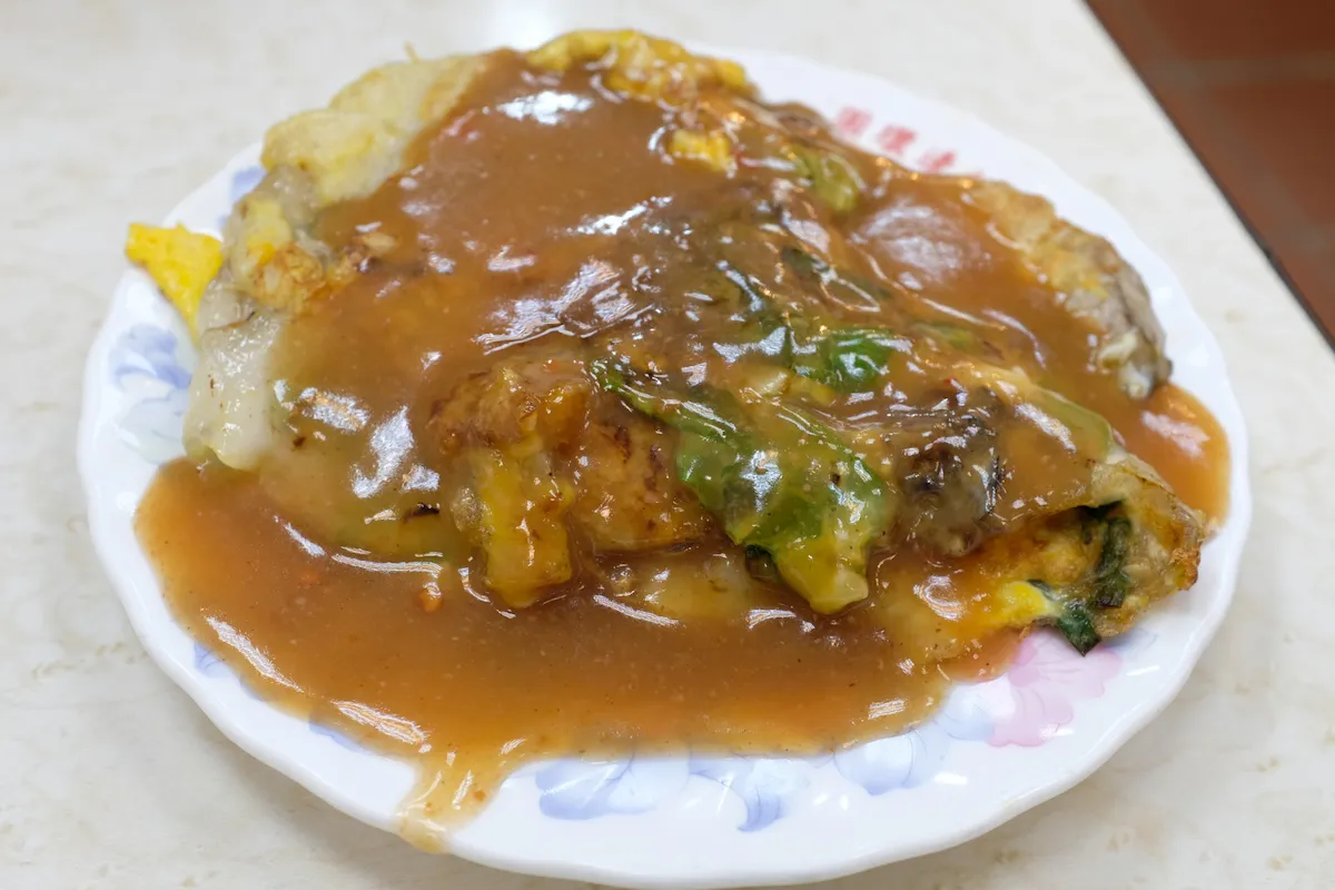台北の寧夏夜市沿いにある店舗形式の飲食店「圓環邊蚵仔煎」に行ってみました ミシュランのビブグルマンに何回も選ばれている人気店なので常に行列が出来ています この日も雨が降る中、店の前には十数人が並んでおり、我々もその後ろに並びました 回転はそこそこ速く、並んでいる間に注文を取りに来てくれます この店は牡蠣料理の店で、一番人気は店名にある蚵仔煎です 今回は蚵仔煎95TWDとこの店で一番高い蒜味乾蚵180TWDを注文しました 番号札をもらって相席のテーブル席に着席すると、最初に蚵仔煎が運ばれてきました 蚵仔煎は牡蠣入りオムレツのことです 見た目はただの玉子焼きですが、箸で切ろうとすると水溶き片栗粉を熱したときのゴムのような粘り気があります 焼くときにサツマイモの粉を水で溶いたものを入れているのでこういう感じになるようです 箸で分けると中から沢山の小ぶりの牡蠣が出てきます かかっているスイートチリソースと卵の味が強いので一緒に食べると牡蠣の存在感は薄めに感じました 個人的にはオムレツの中から牡蠣を発掘して牡蠣単品で食べた方が素材の味を楽しめて美味しいように思います 続いて蒜味乾蚵を頂きました 「乾」の文字が入ってますが、乾いているわけではなく、逆に茹でてしっとりしています 茹で牡蠣のニンニクソースがけというのが日本語訳でしょうか こちらの牡蠣の方が明らかに大ぶりで、すりおろしたニンニクと長い生姜が大量に添えられています 牡蠣にニンニクを適量付けて頂くと、プリプリ食感で海のミルクと呼ばれる濃厚な味が口の中に広がります 日本でいたら絶対のビールが欲しくなる一品ですが、店にビールが無いのが残念なところです(笑) メニューには牡蠣のスープとか他の牡蠣料理もあったので牡蠣好きにはオススメのお店です