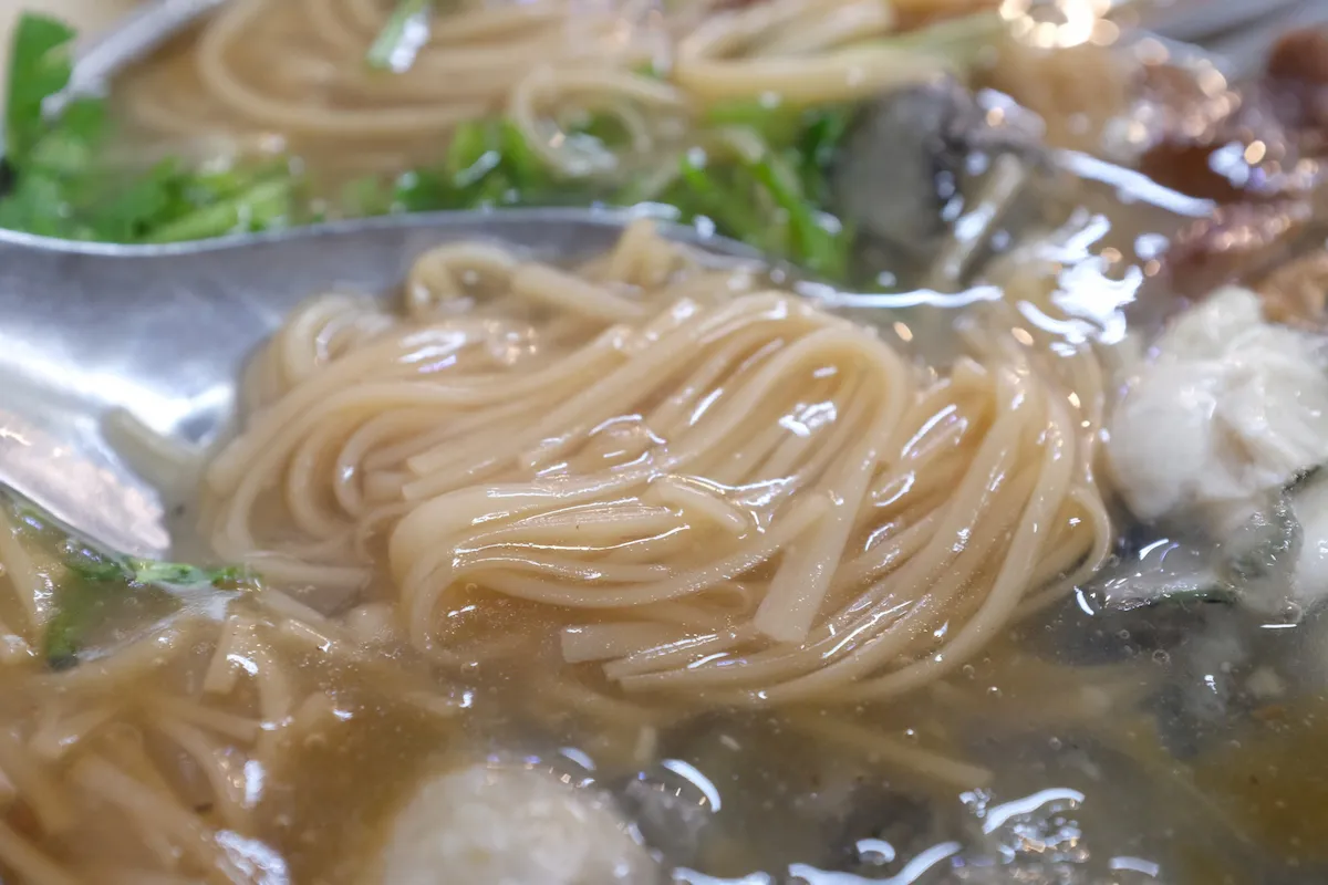 台北の雙連駅から西へ500mほどの「阿川蚵仔麺線」で朝食を頂きました 店に入って座って待っていると、「日本人ですか?」と日本語で店のおばちゃんが声を掛けてくれました 一番色々入った綜合麺線80TWDを注文 注文すると「パクチー入れて大丈夫?」と聞いてくれたので、パクチーを入れて持ってきてもらいました 綜合麺線はたっぷりのスープ入りの麺に牡蠣と豚のモツが入っています おばちゃんによると、ここにテーブルにある酢、すりおろしニンニク、ラー油などを入れて混ぜて食べるのがオススメとのこと 指示に従って食べてみると、確かに旨みが出たスープにアクセントが付いて良いです 麺は素麺をもう少し平たくしたくらいで、汁がよく絡みます 牡蠣は片栗粉のような成分を纏っており、そのおかげで縮まらずプリプリ食感を保っているようです 噛むと中から牡蠣自体の独特の風味がジュワーっと口の中に広がり、臭みも全くなく、これだけでも最高です 豚のモツ(大腸)はしっかり下処理がしてあり、こちらも全然臭みがありません モツらしい脂分と旨みが染み出してこれも麺によく合います 日本ではなかなか味わえない安くて美味しい朝食に出会えて大満足で店を後にしました