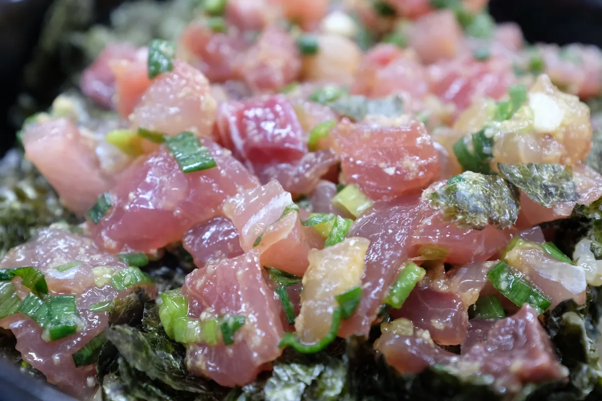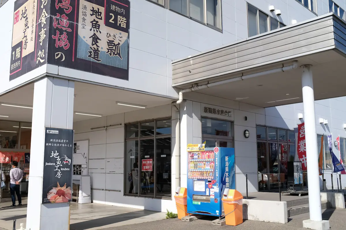 新潟港近くにある新潟県水産会館の2Fにある「地魚食堂 瓢」でランチを頂きました 漁協の食堂で、ちょうど正午くらいでしたが席には余裕がありました セルフサービスのお店なのでまずは食券を購入します メニューは色々ありますが、海鮮丼系は基本的に1500円以上します その中で海鮮が乗っているのに唯一安いのが、今回注文したたたき丼860円です 食券を厨房のカウンターに持っていき、大盛無料なのでおばちゃんに大盛でお願いしました しばらくすると番号が呼ばれ、お盆にたたき丼、味噌汁、漬物が載っていました たたき丼はご飯の上にきざみ海苔と数種の魚を細かく刻んだ刺身を乗せた一品です 食べてみると、魚は醤油、すりおろした生姜、青ネギを絡めて予め味付けしてありました 魚として多いのは鮪で、赤身とトロっぽい部分もありました 他にも白っぽいカンパチかなと思うものもあり、十分な具が入っています それ以上に大盛ご飯の量が多くて、最後は白飯が残ってしまいました そこで登場するのが味噌汁です 味噌汁にはエビの頭が2つ入っていて、白味噌の味噌汁に海老の風味が染み出しています 行儀が悪いですが、海老の頭を吸うとさらに旨味が出てきてやめられません 因みにこの味噌汁もおかわり無料です こうして完食して、食器類を返却口に返してごちそうさま 隣のピアbandaiにも海鮮丼の店はあるようですが、昼時は行列必至なので私なら空いているこちらを選びます