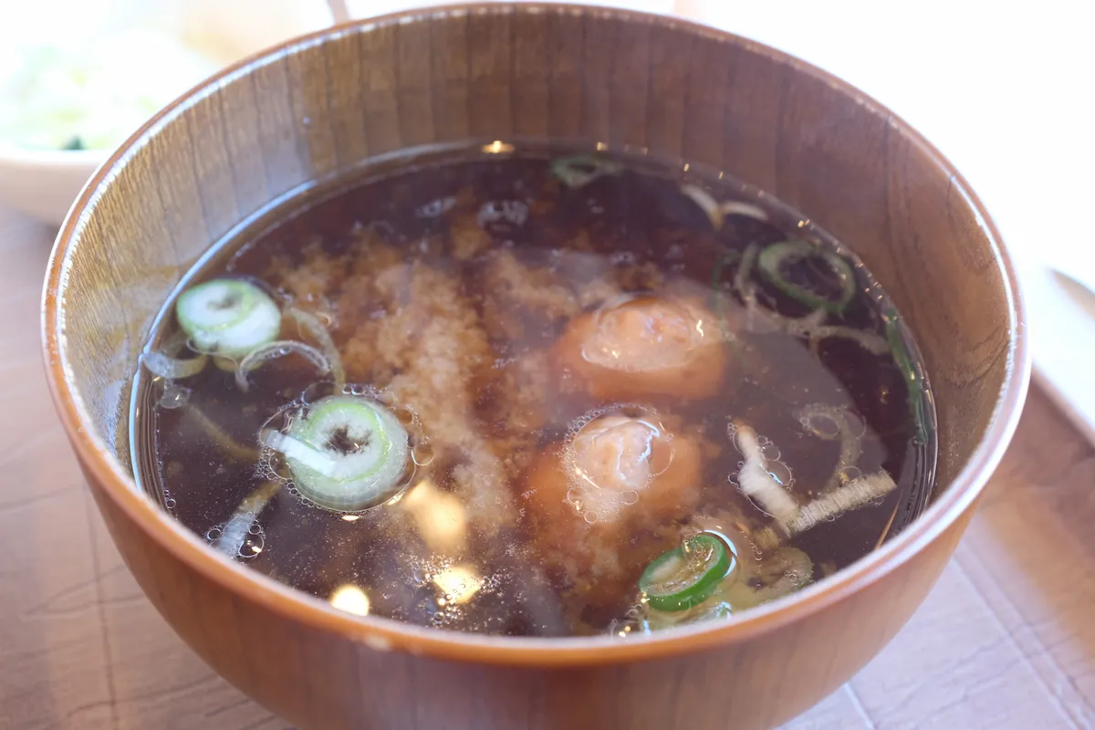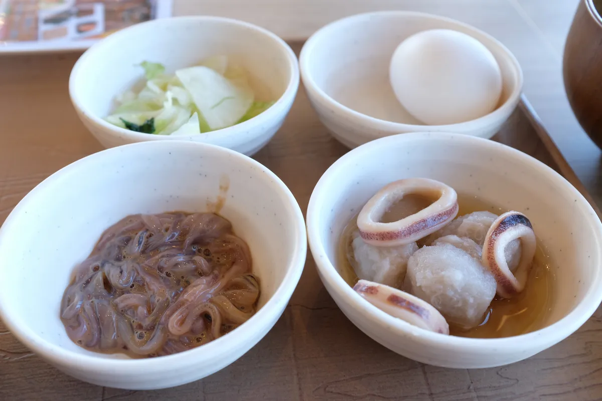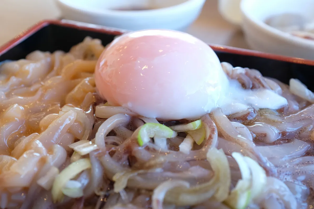 酒田市のいろは蔵パーク内にある「イカ恋食堂 ごはん亭」で昼食を頂きました いろは蔵パークは今春開業の新しい施設でその中の飲食店として入っています フードコートのような店内で、窓口で注文と会計を済ませたら番号が渡されるので呼ばれるまで待ちます 今回はイカ尽くしのイカ恋三昧重1290円を注文し、最初の客だったので5分も待たずに完成しました イカ恋三昧重はご飯の上に3種類のイカの刺身が乗ったものです 真ん中にたっぷりのイカ刺、左がウニペーストを絡めたウニイカ、右が明太子を絡めた明太イカです。 イカ刺は味が付いていないのでテーブルにあるいかの肝醤油orイカ恋食堂の甘だれをかけて頂きます 甘だれは私には甘過ぎたので、個人的なオススメはいかの肝醤油です イカの刺身とご飯が合わないわけなく、たっぷりのイカと一緒に口に運ぶと贅沢な気分になります ウニイカはウニとイカがそれぞれ負けず劣らず主張しあって、これまたご飯に合います 居酒屋メニューなんかで明太子とイカの料理があるくらいなので、明太イカももちろん美味いです ただイカばかり食べていると飽きてくるので、味変で食べ放題の温泉卵を乗せてみました 温泉卵を割ると黄身がとろりと出てきて、イカ刺に絡めて食べるとこれまたイケます とは言いながら、正直、生のイカのキャパオーバーでした(笑) イカ恋三昧重にはセットで汁と小鉢が付いています イカに恋しすぎているので、汁はイカ団子汁です 味噌汁の中にイカ団子が2個入っているだけですが、この汁もイカの風味が凄いです 小鉢も当然イカでイカと里芋を煮物でした 漬物はイカじゃないですが、イカの塩辛が食べ放題なのでもちろん沢山頂きました これだけイカを食べると口の中が本当にイカ一色になります 文字通り飽きるほどイカを食べられるので、イカ好きにはオススメのお店です