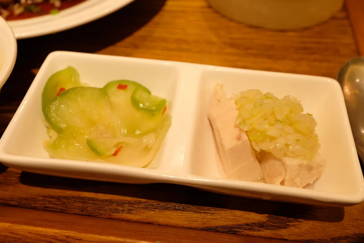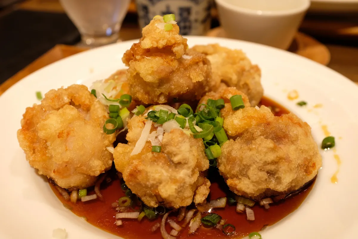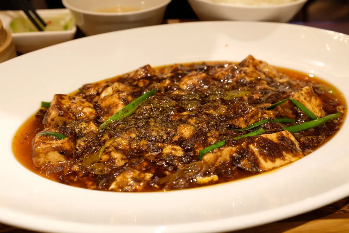 梅田に所要があり、エストの東の端にある中華料理店「正宗広東私房菜サワダ」で妻とランチにしました 「中華」と「サワダ」の組み合わせで分かる人ならピンと来る澤田州平シェフの関わっているお店です 訪れたのは11時15分頃で、ちらほらお客さんがおられましたが、まだ席に余裕があり、2人掛けの席に座りました 中華料理店でありながら、スタイリッシュで落ち着いた雰囲気の店内で、個室もあるようです ランチのセットはリーズナブルな価格で提供されており、庶民にはありがたい限りです 少し悩んで、私は油淋鶏セット1380円、妻は澤田流麻婆豆腐セット1580と茉莉花茶550円を注文しました 注文を終えるとまず茉莉花茶が大きな急須に入ってやってきて、2分待ってから頂きました 口の中にしっかりジャスミンの香りが広がり、これだけでちょっと良い中華に来た気分になれます お茶を飲んでいると、妻の澤田流麻婆豆腐セットが最初に運ばれてきました もちろん楕円の器に入った赤黒い麻婆豆腐がメインです 少しもらって食べてみると、まず肉、スパイス、油の風味が口の中に広がって、後から辛味がやってきます 麻婆豆腐のスパイスといえば花椒が思い出されますが、花椒は感じませんでした テーブルに赤山椒と青山椒が置いてあったので、痺れが欲しい方はお好みで入れるスタイルなんだと思います スパイスが何かはよく分かりませんでしたが、カレーに使うクミンやコリアンダーに近いものが入っているような気がしました 肉、豆腐、白ネギ、ニラと調味料のバランスが良く、ご飯が進む品であることは間違いないです 続いて、私が注文した油淋鶏セットがやってきました お皿の上に丸い形状の唐揚げが積み上げて盛り付けられており、上から青ネギ入りのソースがかかっています 油淋鶏を口に入れて最初に感じるのはレモングラスの強烈な香りです 今まで色んな油淋鶏を食べてきましたが、レモングラスがこんなに主張してくるものは初めてです タレは甘味、塩味、酸味のバランスが取れており、サクサクの衣と柔らかい鶏肉に非常にマッチしています 結構大きくカットされているので、油淋鶏だけで相当満足感があります メインの話はこれくらいにして、セットには点心の広東焼売が付いていました 黄緑色を帯びた薄い皮で包まれた焼売で噛むと具のプリっとした食感がたまりません 予め味付けされており、しっかり閉じ込められた豚肉とキノコの旨味が染み出します 他にもセットには蒸し鶏とザーサイが付いています 蒸し鶏の上にはネギソースがかかっており、あっさりした鶏ムネ肉にネギの風味と油が絶妙にマッチします ザーサイと言えば茶色を思い浮かべがちですが、この店のザーサイは緑です しっかり漬けて発酵させたものが茶色で、浅漬けのザーサイは緑なんだとか 緑でもコリコリした食感はあり、個人的には緑の方が好きな味でした セットのご飯とスープもしっかり完食してごちそうさま 各料理に一工夫がされており、面白さもありながら質、量とも大満足出来るお店でした