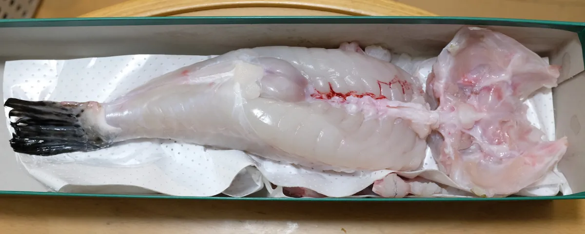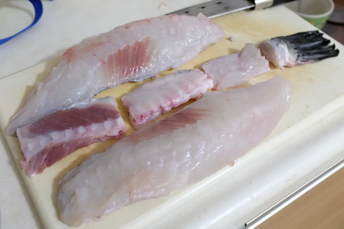 先週の土曜日に青い箱に入ってこんなものが届きました。 業務用のとらふぐです。 大分県佐伯市のふるさと納税返礼品で、豊後とらふぐを除毒処理したみがき(身欠き)というものです。 毎年、ふぐを色んな自治体からもらってますが、こういう形でもらうのは初めてです。 youtubeには、みがきからてっさやてっちりにする方法が紹介されているので勉強して調理してみました。 まずは頭を落として、身の真ん中あたりの膨らんでいる部分にあるウグイス骨を外します。 そして中骨と身を分けるために三枚におろします。 この部分までは簡単に出来ました。 身から血合いなどを取り、薄皮を取るらしいのですが、どこが薄皮か分からない。 切っているうちにどんどん身が小さくなっていってちょっと焦りました。 何とかてっさ用の身を確保して、ペーパータオルとラップに包んで一晩寝かせます。 寝かせることで身に弾力が出るらしいです。(既に弾力はかなりありましたが) 中骨は3つに切り、頭や口の部分も適度な大きさにばらして、こちらはてっちり用。 翌晩、てっさ用の身を取り出してまな板に載せ、薄く切っていきます。 包丁を寝かせてふぐの身を押さえて刃の前に盛り上がって部分をスーッと切るイメージです。 これは慣れれば簡単にできるので、写真は無いですがそこそこ上手く出来ました。 写真が無いのは切ったそばから入れ食い状態で子供に食べられたからです。 プリプリの身からふぐ独特の味わい染み出して美味だったので、入れ食い状態になる我が子の気持ちも分からないわけではないです。 ふぐ皮も付いているのでさっと湯に通して細かく切って頂きました。 ふぐ皮はポン酢、もみじおろし、青ネギをかけて混ぜて食べるのが私のお気に入りの食べ方です。 てっさと同時にてっちりも作っており、刺身でも食べられる身なので最後に鍋に投入し、軽く火を通して頂きました。 弾力を残したままの身は絶品で、かなりのボリュームだったので食べきれず、その翌日も頂きました。 調理は大変ですが、量と質を考えるとこれからはみがきという選択肢もありだなと思った次第です。 みがきを以て自分磨き(みがき)をした気分の竹バイクでした。 |
