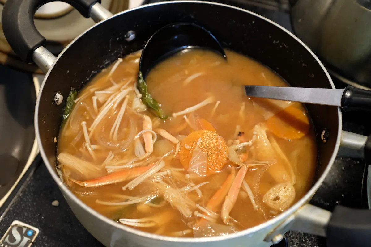一週間の夏休みを終えて、もう何ヶ月も仕事をしていないような錯覚に陥っている竹バイクです。 実家に帰ったり、親戚宅へ行ったりして、有意義(多忙?)な過ごし方をしたからかもしれません。 帰省していると自分で調理しなくても美味しい料理が食べられるという幸せがあったわけですが、自宅に帰ったらそうはいきません。 夏休み最終日、帰省前に空っぽにした冷蔵庫に食材を補給すべく独りで買い出しへ。 手軽に美味しいものが食べたいけど、マンネリは嫌だという自分で自分の首を絞める我儘に耳を傾けながらカートを押します。 一旦、魚コーナーの鯛アラに手が伸びたのですが、「マンネリ」だと耳元で囁きました。 鯛を返して、横に脂の乗った鮭のアラとカンパチのアラがあったので用途も考えずにそちらを購入。 家に帰ってから、買ったは良いもののどうしようかと悩むわけです。 煮付けという手はありますが、調味料の加減と火の入れ具合が不器用な竹バイクには難しい...。 焼くという選択肢を取った場合、薄い身の部分がパサパサになった経験があるなぁと色々思案。 鮭とカンパチを同時に使う味付けは味噌...そうだ味噌汁に入れよう。 ということで今回は鮭とカンパチのアラ汁の紹介です。 石狩汁にカンパチをさらに追加した料理という感じです。 カンパチは臭い強めの魚のため、まずはまな板の上に並べて、上から熱湯をかけて臭みを取ります。 鍋に鮭とカンパチを並べて火を点け、しばらくしたら上から日本酒をドバーッと適量かけます。 上から別にカットしておいた玉ねぎ、キャベツ、しめじなどの野菜類を入れてます。 さらにそこにほんだしと水を投入して、適度に混ぜてクツクツなるまで煮ます。 ほんだし活用術ですが、私は味の素の回し者じゃないですよ。(笑) ある程度火が通ったら、もやし、マイタケ、豆腐など火を通し過ぎると食感や香りが変わってしまう食材を投入。 その後に味噌を溶かしながら入れたら、鮭とカンパチのアラ汁の完成です。 食べてみると汁に魚の香り成分が結構出ているというが第一印象。 逆に魚の身自体は臭みが少なく、ふっくらしていてかなり美味しいです。 骨を取って息子たちにも渡しましたが、魚はかなり気に入ったようでバクバク食べてくれました。 翌日も残りを食べてみると、味が落ち着いていて、汁から魚の旨味をしっかり感じられるようになっていました。 魚の身が崩れて小さな骨が面倒という点はありますが、魚介料理店で出てくる魚汁に近い感じで味は良いです。 一日置いた方が汁が旨いというのは、魚のアラからはしっかり出汁が出るという証左かもしれません。 安いアラを美味しくフル活用してお腹だけでなく守銭奴としての心も満たされたのでした。 |