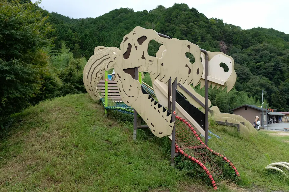 秋分の日の暦の通り、近頃秋めいてきて、昼間に外出する気が出てきました。 そこで久しぶりに車を借りて、家族で兵庫県丹波市まで小旅行に出掛けました。 丹波市は兵庫県の東部に位置し、平成の大合併で氷上郡6町が合併してできた市です。 緯度的には淡路島を除く本州兵庫県の真ん中あたりですが、阪神エリアに住む民としては三田、篠山のさらに奥なのでかなり北の感覚があります。 合併時に旧国名「丹波」を市名にする点で、「お前は丹波の中心都市じゃないだろ(意訳)」と周辺市から反発があり、篠山市はわざわざ丹波篠山市に改名したくらいです。 今回はそんな丹波市南部の山南町と柏原町を散策し、最後におやつを食べに春日町に立ち寄った旅になります。 9時過ぎに伊丹を出発し、10分経つか否かで4歳の次男が「まだ着かないのー?」と言い出しました。 申し訳ございません、どこでもドアを持っていないもので。 宝塚ICで中国道に乗り、吉川JCTから舞鶴若狭自動車にを北進。 丹南篠山口ICで下りて、東へ10kmほど走ると最初の目的地である丹波市山南町の丹波竜の里公園に到着。 巨大な丹波竜(タンバティタニス・アミキティアエ)がお出迎えしてくれます。 丹波竜はここから500mほど先の川底で2006年に発見された恐竜です。 そこから「山南町=丹波竜」となり、丹波竜一色の町になっています。 丹波竜の里公園自体は恐竜のオブジェと恐竜型の遊具、恐竜のベンチがある普通の公園です。 子供たちは遊べれば文句はないので存分に楽しんでいました。 しばらくすると隣接する道の駅っぽい施設「元気村かみくげ」からおじいさんが近付いてきてこっちに来るように呼びかけられました。 6歳の長男は知らない人が声をかけてきたので完全に引いて母親の足にべったり。 代わりに私が話を聞くと、ちょっと離れた場所から写真を撮ると「手乗り丹波竜」が出来るとのことでした。 長男はこうなるともう動かないので、おじいさんに挨拶だけして戻りました。 その後もおじいさんは色んな人に手乗り恐竜をオススメしていました。 オススメスポットなら表示しておいたら良いのにと思ったのですが、きっとおじいさんは色んな人と話がしたかったんだろうなと思う次第です。 公園で30分くらい遊んだので、次に行こうとしたのですが問題発生。 次男が元気村かみくげの軽食堂でおもちゃを売っているのを発見してしまいました。 次男はその場に座り込み動かなくなり、持久戦に突入。 もう今日は別のおもちゃは買わないと約束し、兄弟でひとつずつおもちゃを買ってもらっていました。 おもちゃをGETして上機嫌になった子供たちを乗せて昼食へ。 丹波竜の里公園から西へ4kmほどの集落内にポツンとある「ゑにちうどん」という讃岐うどんの店です。 詳細 今年オープンしたお店で、外観は普通の民家なのですがセルフ式の本格的な讃岐うどんが頂けます。 かけ、ひやかけ、ぶっかけの3種類を家族4人でシェアし、うどんをコンプリート。 個人的にはひやかけが一番のお気に入りでした。 天ぷらの中に丹波っぽい「いのししコロッケ」があってなかなか面白かったです。 うどんでお腹を満たして、次に向かうはさらに4kmほど先にあるたんば恐竜博物館。 博物館の外壁を丹波竜が突き破っちゃってました。 頭側だけでなく、尻尾でも突き破ってます。 尻尾の下にTDM(Tamba Dinosaur Museum)と書いてあって何で略しているんだろうとこのときは思ってました。 数日してから「あれは大きなネズミの国TD〇に寄せてたんだ!」って気付きました。 大きなトカゲの国であるTDMに入ってみると、エントランスにも丹波竜。 博物館なので丹波竜の全身骨格などもありますがデカすぎて写真が上手く撮れません。 見ていると丹波竜の全身骨格はスルーされがちで、ティラノサウルスの方を皆さん撮影をされてました。 この博物館は非常にコンパクトで子供でも飽きずに見て回れます。 恐竜に関係する本を置いたスペースもあり、子供連れにピッタリだと思います。 その結果、何冊か覚えていないくらい本を読まされましたけどね。(笑) 博物館を出ると13時半頃になっており、これでこの旅の恐竜パートは終わり。 丹波市の歴史の町柏原パートに続く。 |