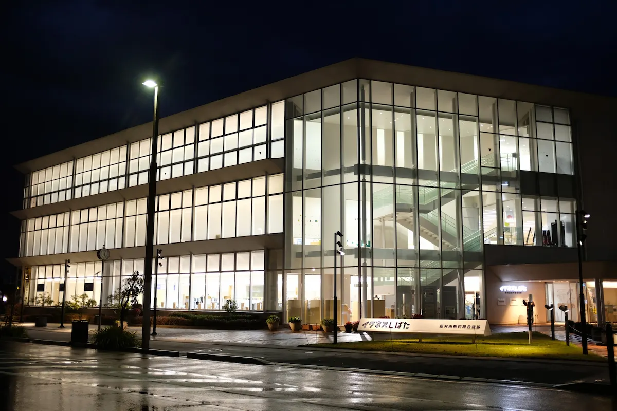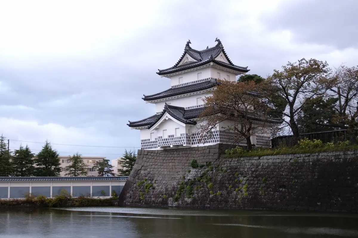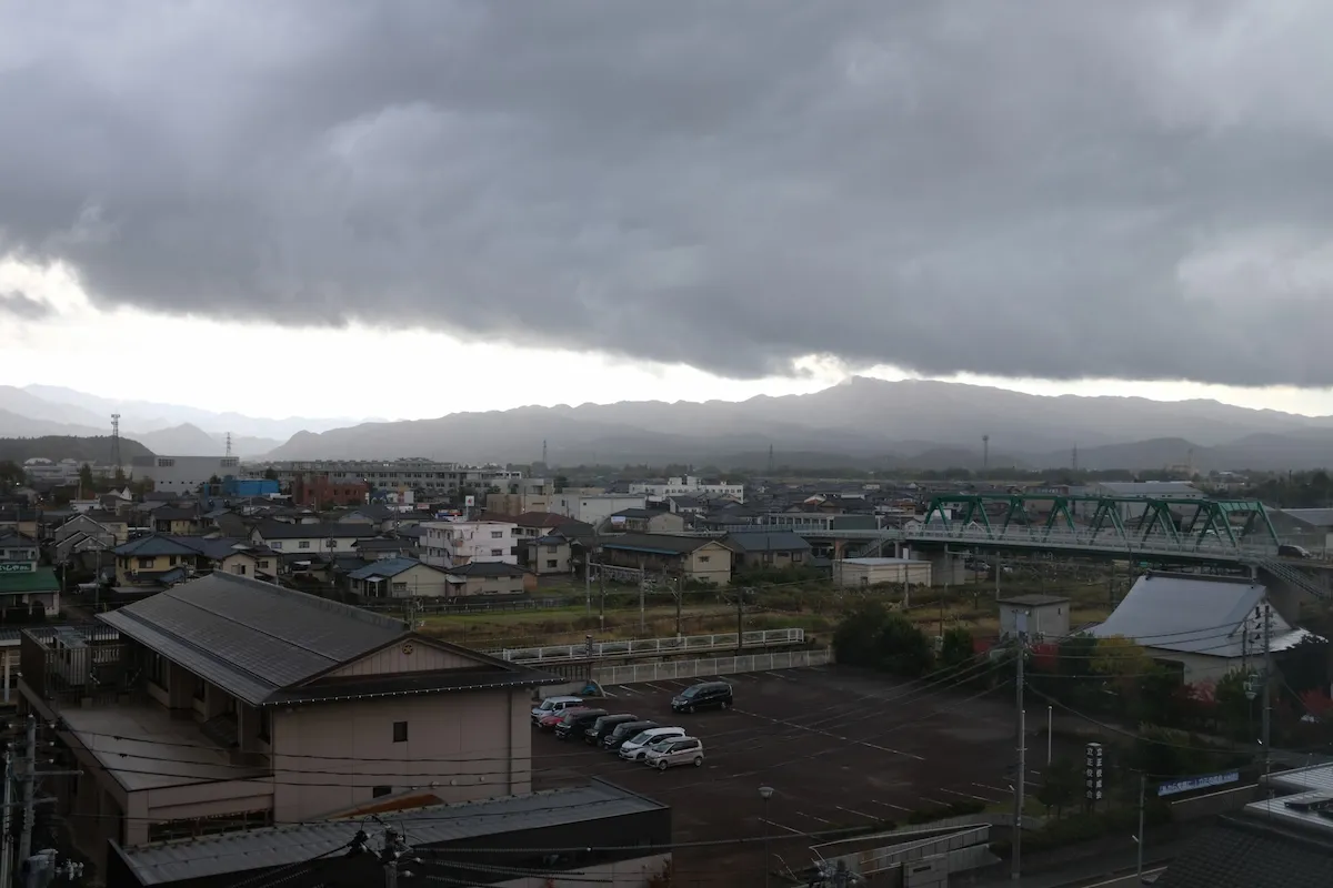 新潟駅から村上行の電車に揺られていると西の空が異常に暗いことに気付きました。 実はこの日の新潟は雷雨予想で、新潟市内が晴れていたのはラッキーでした。 雨雲レーダーを見ると雨が降り出すのは15時過ぎくらいと予想。 そんなことを調べながら電車に揺られること40分ほど14:26に新発田駅到着。 どんよりした天気ですが、まだもう少し猶予があるはずと早速観光開始。 まず駅前で驚いたのは、青信号が本当に青いこと。 調べると雪国では視認性を上げるため、本当に青の信号があるらしいです。 新発田市は旧新発田藩の城下町です。 新発田駅と、北西へ2kmほどの新発田城跡との間が中心市街地になっています。 まず駅から直ぐのところに蔵春閣という建物がありました。 元々東京に建てられた迎賓館で、船橋に移築された建物を一旦解体して、この地に立て直したものだそうです。 さらに向かいには新発田総鎮守の諏訪神社。 賽銭箱に10円を入れて天気が悪くなりませんようにと願いました。 10円でお願いしたのが神の怒りを買ったようで直後にポツポツと雨が降り出しました。 まだ15時になっていないのに...と思いながらこの日の宿の新発田ニューホテルプラザにチェックイン。 昭和感があるホテルですが、一人旅には十分です。 雨雲がどんどん流れ込んできて強くなったり弱くなったりと不安定。 しばらく部屋でいましたが、じっとしていても面白くないので意を決して外出。 今度は諏訪神社前から王紋酒造の横を通って西に進みます。 しばらく歩くと歩道に屋根が付きはじめ、こういうところに雪国っぽさが感じられます。 さらに北へ進むとガラス張りの立派な新発田市役所が現れました。 他にも蕗谷虹児記念館や文化会館などお金がかかってそうな建物が沢山あり、もしかすると新発田はお金持ちなのかもしれません。 そんなことをつぶやいたら新発田の神が再び怒ったのか雨が再び降り始めました。 傘をさしてしばらく歩くと新発田城跡の表門に辿り着きました。 新発田藩の初代藩主溝口秀勝が築城した城で、現在は櫓がいくつか復元されています。 門を入ると係のおじさんがいて「16時半で閉門です」と言われました。(この時点で16時) ただ入れるエリアにある建物は数か所なので全然余裕で回れました。 なぜ城がこんなに狭いのかというと元々城だったエリアにこれがあるからです。 陸上自衛隊 新発田駐屯地。 少し離れた場所に新発田城の三階櫓は見えたので、さっきのおじさんに行き方を聞いてみました。 おじさん:あの建物は自衛隊の敷地内にあるので一般公開はされていないんです。 自衛隊にこの櫓が必要なのか。 納得いかないので城を出て隣の自衛隊に乗り込むことにしました。 ...嘘です。 これは白壁兵舎広報史料館という施設で自衛隊の展示があるようですが、16時で閉館だったので入れませんでした。 入口に自衛隊の制服を着た怖そうな人が立っていて、写真を撮るのもビビりながらしました。 駅方面に戻る途中、飲み屋街らしき通り(新道・掛蔵)を通りましたが、まだ時間が早かったのか人通りは皆無でした。 こうしていると雨が強くなり、市役所へ逃げ込みました。 市役所は休日でも解放されており、勉強熱心な学生さんたちが机に向かっていました。 ただ奇声を発しながら徘徊している人がいてちょっとかわいそうでした。 ずっといるわけにもいかないので、雨を避けるように屋根のある駅前通りを歩いて帰りました。 ほぼシャッター街ですね。 その中でも気になったのがこちら。 ハードオフの原点(発祥の地)がこんなところにありました。 こうして17時ごろに駅近くまで戻ってきましたが、お目当ての夕食の店は17時半開店。 ホテルに帰るのも面倒なので近くにあるイグネスしばたという公共施設へ。 ここの1Fは図書館の分館となっており、雑誌を読んで時間を潰しました。 17時半になり、駅前の食堂本田屋でうま煮ライスとしゅうまいを頂きました。 詳細 この店のしゅうまいは人生最大のサイズでした。 うま煮ライスもボリュームたっぷりなので本当にお腹いっぱいになってホテルに戻りました。 部屋で雨で濡れた靴や傘を乾かし、風呂に入ってゆっくりして、羽越旅行初日を終えたのでした。 11/3(月)、朝7時半に外出してボン・タケダというパン屋でパンを購入。 詳細 ホテルに戻って部屋に置いてあるインスタントのコーヒーと一緒にパンを頂きました。 準備を整え、もう少しだけ天気がもってくれることを願いながら9時頃にチェックアウト。 外を見ると地面を斜めに激しく打ち付ける雨...。 もう少しだけ新発田観光を続けるのですが、とりあえず屋根のある所を通って、溝口家の菩提寺の宝光寺に行きました。 立派な寺の門の下でしばらく雨宿りしましたが全然雨は収まりそうにありません。 このあたりは寺町というエリアで水路と寺が並びます。 さらに南には足軽長屋というものがありましたが、雨なので外から見るだけにしました。 昨日ホテルで乾かした